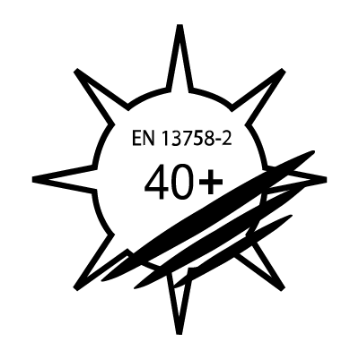 Garments evaluated according to EN 13758-2 are marked with the symbol below and give you as a wearer a protection of UPF 40+ (Ultraviolet Protection Factor of at least 40) and an average UVA review of less than 5%.